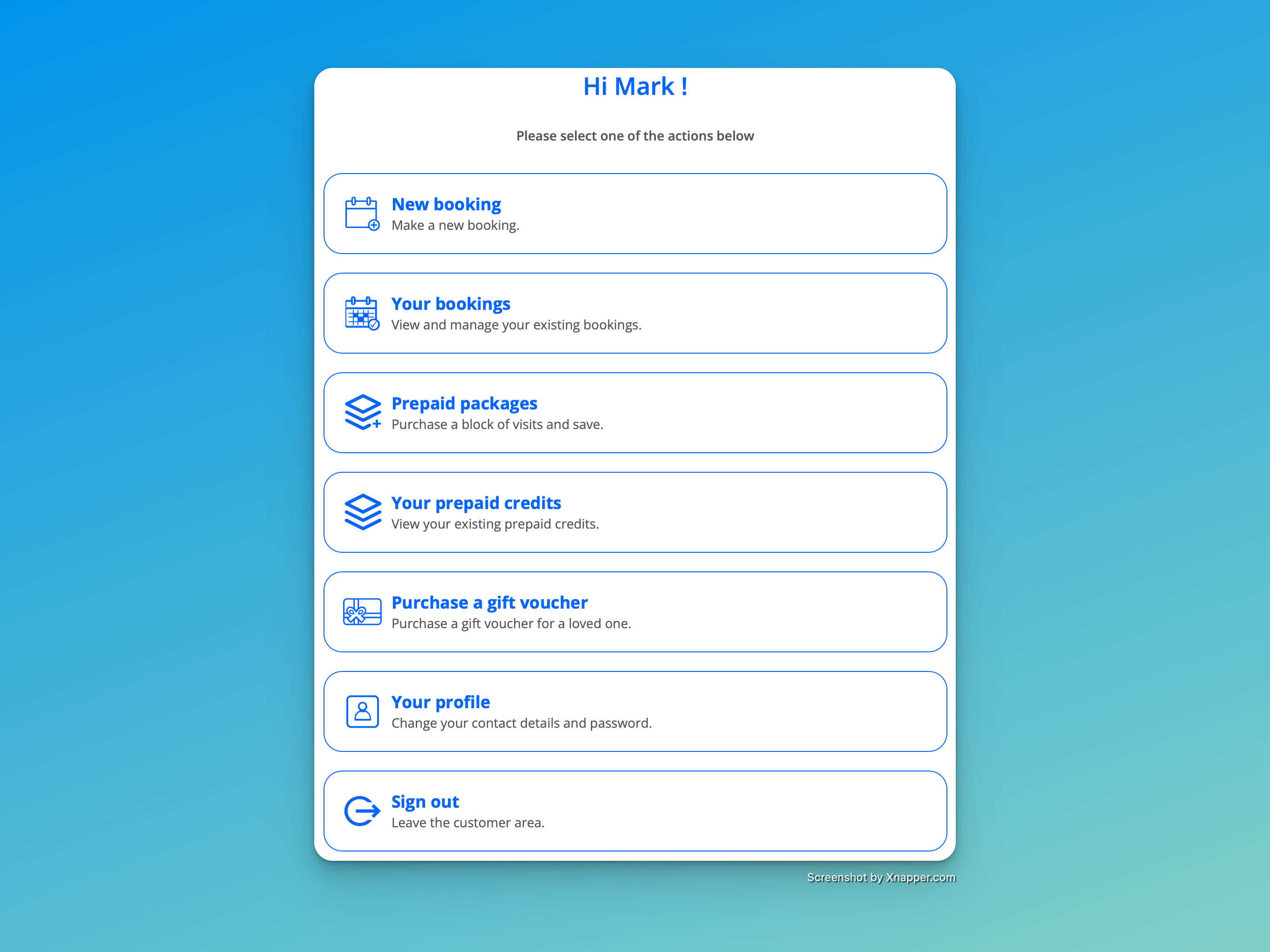 In your account, you can make a new booking, view your bookings, and update your profile.